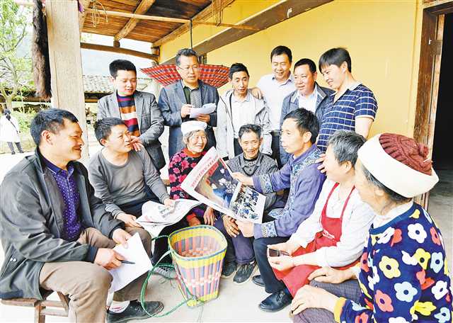 四月十八日下午,石柱土家族自治县中益乡华溪村干部群众,学习当天报纸报道的总书记来重庆视察时的重要讲话。特约摄影 杨波