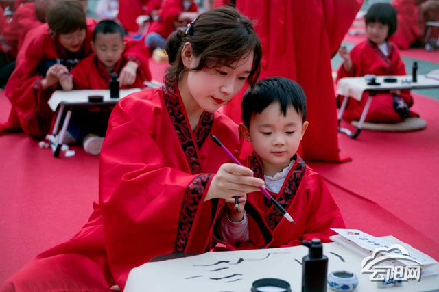 活动现场,一片红色的海洋。大家身着统一的古装,感受中国传统文化。正衣冠、知礼仪、诵诗文、写汉字,一项项极具传统文化气息的主题活动让小朋友们乐此不疲。 随后,“投壶”、“殿前小实”、“击鼓传花”等亲子互动活动也开展得如火如荼。家长表示,让孩子从小接触中国传统文化的熏陶,有利于孩子的健康成长,通过活动,加强与孩子、与老师的沟通交流,促进家校共育。