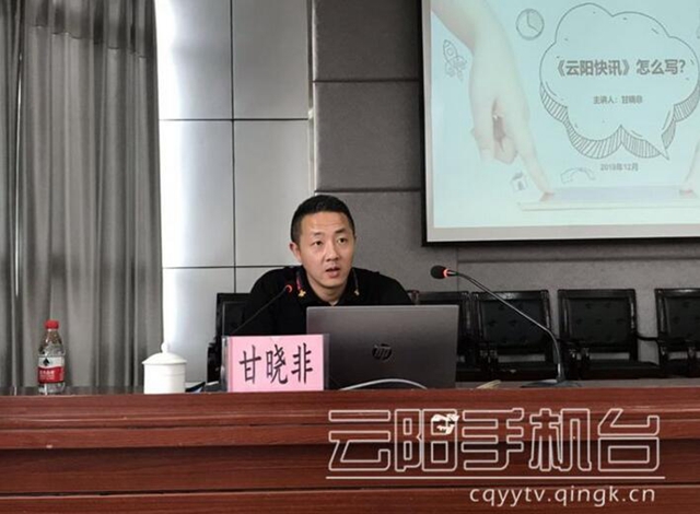 培训会上,云阳报社编辑李旭忠、县广播电视台新闻中心主任甘晓非分别就新闻消息写作、人物通讯写作、云阳快讯编写,结合案例从理论到实际作了深入浅出地讲解。
