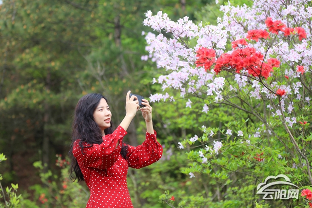 开幕式结束后,游客们漫步在公园中,放眼山峦间已成了一片花的海洋,公园各处的莫尔杜鹃、紫蓝杜鹃、皋月杜鹃等10余个品种争奇斗艳、美不胜收,从山底到山顶次第开放,宛如一条粉红的丝绸绵延铺展在山坡上。