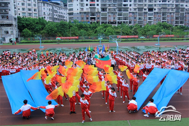 云阳网讯(记者 杨梅娜)4月28日,天景初中鼓声阵阵、彩旗飘飘,全体师生迎来了第九届体艺节。