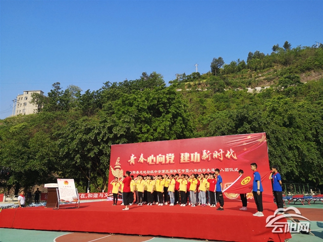 云阳网讯(实习生 刘超 通讯员 贾晓菊)近日,龙池初中隆重举行“青春心向党 建功新时代”第三届体艺节暨八年级学生退队入团宣誓仪式。活动以集体宣誓、诗歌朗诵为主要形式,祝福八年级学生迈入青春之门,祝福伟大祖国永远繁荣昌盛。