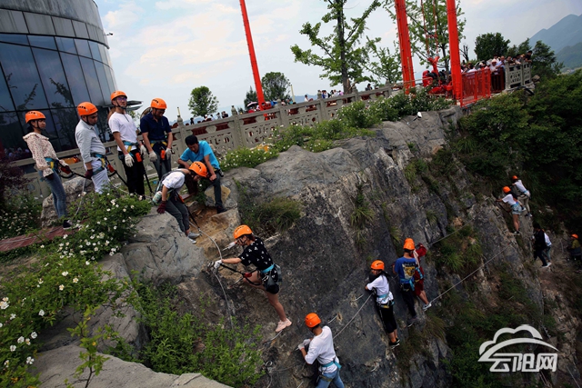 据现场相关人员介绍,一旦体验者攀爬过第一道崖壁后,便没有了折返的机会,直至完成整个飞拉达项目,整个项目耗时大约为1小时。这不仅是对体验者的一场心理与身体的双重考验,也是一条没有回头路的“绝壁求生”。整条攀岩路线的难度也是循序渐进,攀爬梯、绝壁攀崖、铁索桥、悬崖小屋、彩虹桥、缅甸桥,让体验者从刚开始的胆怯、颤抖、紧张一步一步掌握攀岩技巧,战胜心理恐惧到达终点。整个过程也并不需要体验者具备攀岩技巧和经验,只要胆大心细就可以行走于悬崖绝壁,感受御风而行的刺激和凌空而行的惊奇。