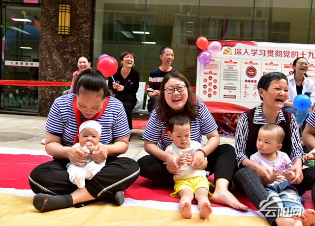 “丢,丢,丢手绢……”“手绢在你身后,快追!”活动中,家长们抱着孩子,一起玩起丢手绢、传纸杯、才艺表演等游戏,现场充满了欢声笑语。在大人们肢体动作以及笑声的感染下,孩子们也欢快地拍起了手。
