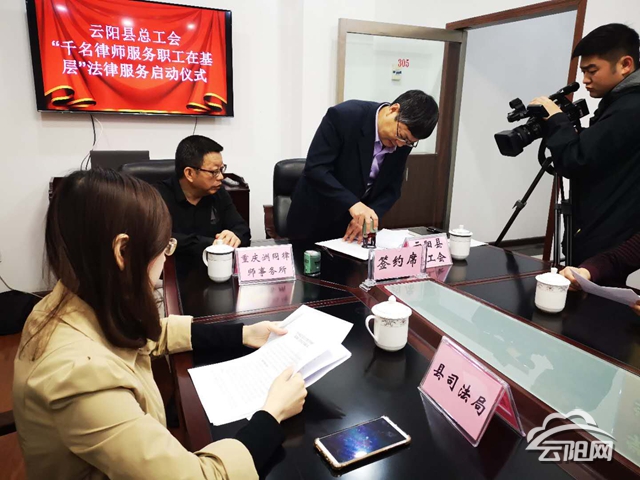 • 云阳网讯(记者 邓磊 通讯员 刘颖)为深入贯彻落实党的十九大精神,扎实推进工会法律服务工作,5月14日,由县总工会、县司法局、重庆洲同律师事务所联合举办的“千名律师服务职工在基层”法律服务在县总工会启动。