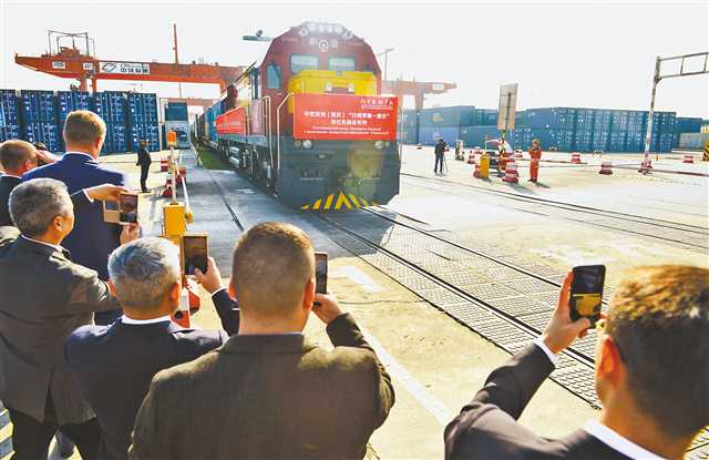 • 沙坪坝区团结村铁路集装箱中心站,中欧班列(重庆)“白俄罗斯-重庆”传化乳制品专列抵达重庆。(本报资料图片)记者 万难 摄