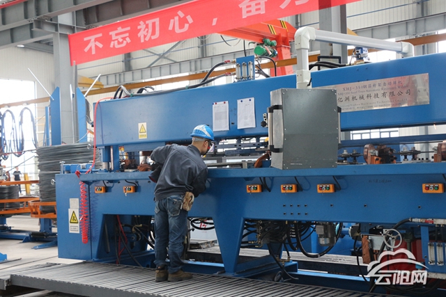 近日,在云阳诚信杭钢结构股份有限公司内,工人们正在加紧生产建筑材料。