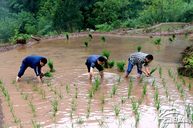 云阳网讯(实习生 邓庭庭)眼下正是插秧的好时节,5月30日,县机关事务服务中心组织工作人员到栖霞镇红龙村帮助缺少劳动力的农户插秧。