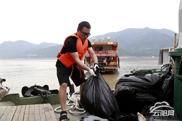 云阳网讯(记者 王彬彬)近日,在两江假日下岩寺码头,记者看见清漂人员正在紧张的工作,张鹏和同事们一起将清漂船上的垃圾转运到垃圾车上。
