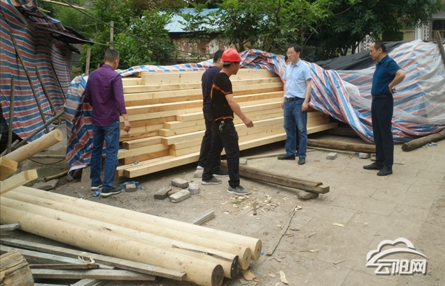 调研小组就正在施工的条石堡坎、木构件等施工情况进行检查,详细了解新木的含水比、三防,石堡坎的工艺是否按设计要求施工,要求施工队要严格按照设计施工,加强对有文物保护价值的建筑构件进行抢救保护,力争使高祖庙恢复原样。