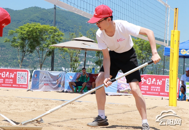 云阳网讯(记者 何竞嘉)6月14日是2019年全国沙滩排球巡回赛云阳站的第二天,在阳光沙滩,沙滩排球的比赛正如火如荼的进行,站在内场附近的陈启源不敢有丝毫马虎,时刻关注着赛场上的沙滩情况。