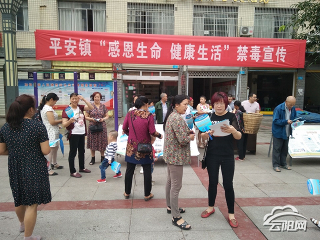 云阳网讯(通讯员 梁星新)6月19日,平安镇综治办、司法所、禁毒办利用赶场天,在平安广场开展“感恩生命,健康生活”禁毒宣传活动。