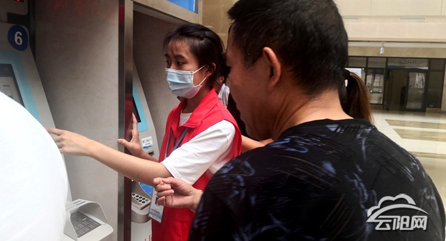 云阳网讯(记者 陈爱玲)“阿姨,您哪儿不舒服?”“请您拿好医保卡,我已经帮您挂好号了,您这边走……”近日,在县人民医院门诊大厅自助挂号机器旁,李秋虹正耐心地帮助前来就诊的市民并进行引导。