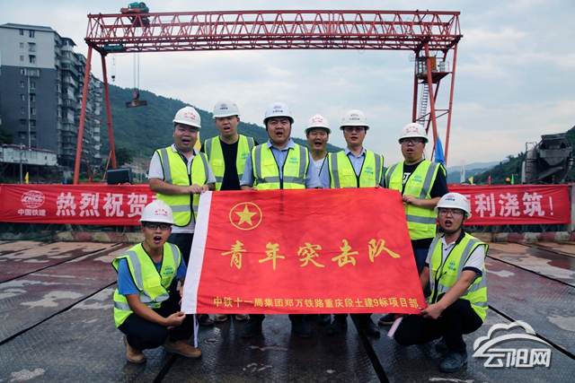 该承台厚度为5米,设计混凝土2251方,搅拌运输不少于225车,现场生产设备需要连续工作27小时以上才可以完成。承台下面由18根桩基支撑,桩基从澎溪河底部往上浇筑混凝土建成,由钢围堰围着,前期基础面需要进行水下爆破,工程难度大,技术含量高,是国内第一深水桥。