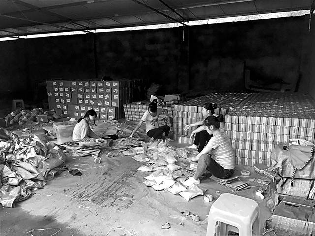 | 工作人员正在将收购的农产品打包,等待物流发往全国。 |