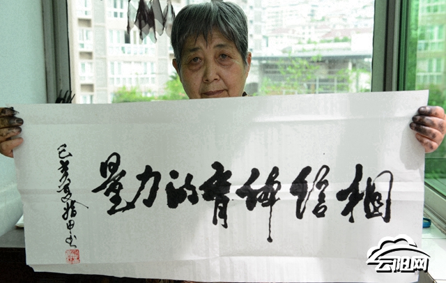 食指最常用也最好用,适合写常规字。5根手指的指甲盖长度和形态也不一,有长有短,有的为内凹,有的呈弧形。书写时,何婆婆会先活动活动手指,然后在指甲上裹上纤维布,再蘸上墨,随即时轻时重、时快时慢,犹如纸上曼舞。