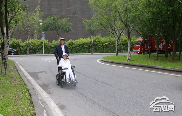 云阳网讯(记者 王彬彬)7月23日,记者在青龙街道张家坝社区看到,一位年过六旬的老大爷用轮椅推着一位老婆婆在坝子上转悠,两位老人还不停地唠着家常,画面十分温馨。