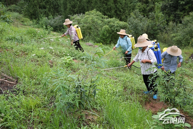 • 云阳网讯(记者 王彬彬)近日,在南溪镇平安村青花椒产业基地,几十个村民正忙着对花椒树除草、施肥、培土、喷药等管护工作。
