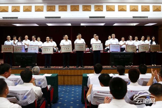 获得“保险业金融机构支持云阳发展考评先进单位”的是:中国人民财产保险公司云阳支公司、中国太平洋财产保险公司云阳支公司、中国人寿财产保险公司云阳支公司、安诚财产保险云阳支公司、中国太平洋人寿保险云阳支公司、中国人寿保险公司云阳支公司。获得“扶贫小额信贷单项工作考评奖”的是:重庆农村商业银行云阳支行、中国农业银行云阳支行、中国邮政储蓄银行云阳支行。