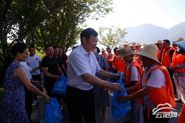 “你们辛苦了!感谢你们把长江的环境清理得这么干净。”在月光草坪,赵勇向奋战在一线的长江清漂队员们表示亲切慰问,并为他们送上了绿豆、藿香正气水等防暑用品。赵勇说,为切实保护好库区环境,清漂大队的队员们每天都坚守在清漂一线,为航道畅通和守护一江碧水保驾护航,为保护云阳“一江四河”的生态环境做出了贡献,希望大家坚守岗位、履职尽责,做好高温天气的安全作业和防暑降温措施。