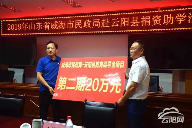 云阳网讯(记者 陈爱玲 实习生 刘超)8月13日,威海市民政局党委委员、副局长宋宝林一行来云开展捐资助学活动,捐赠20万元助推教育事业的发展。