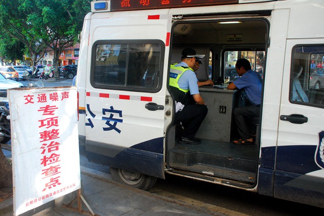 同时,县公安局交巡警大队在城区部分路段定点设卡,重点对机动车在禁鸣区鸣喇叭、营运车辆用喇叭招揽乘客、非法安装高音喇叭等噪声污染交通违法行为和机动车载物行驶时遗洒、飘散载运物、冒黑烟、黄标车禁闯等污染环境行为进行检查。执法过程中,民警坚持教育与处罚相结合原则,在开具处罚决定书后,对驾驶人进行了交通安全知识和城区禁鸣政策的宣传,进一步增强驾驶人的安全文明交通意识。