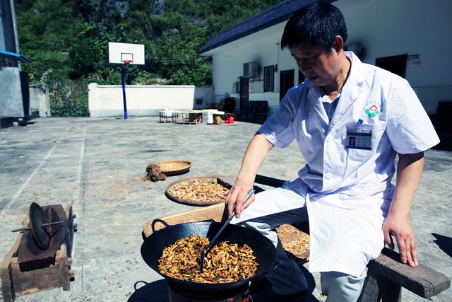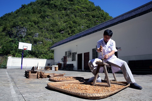据汪忠安介绍,由于该卫生院地处歧耀山,以前交通不方便,部分中药材要靠当地老百姓采挖,每年在当地要采收杜仲、黄柏、金钱草、夏枯草、枳壳、陈皮等50余种中药材。医院炮制人员将收购的中药材进行分类净制、切制和炮炙。净制、切制是药材炮制的必要工序,炮炙需要根据药物的性质分别进行制碳、炒制、酒制、鳖血制等。