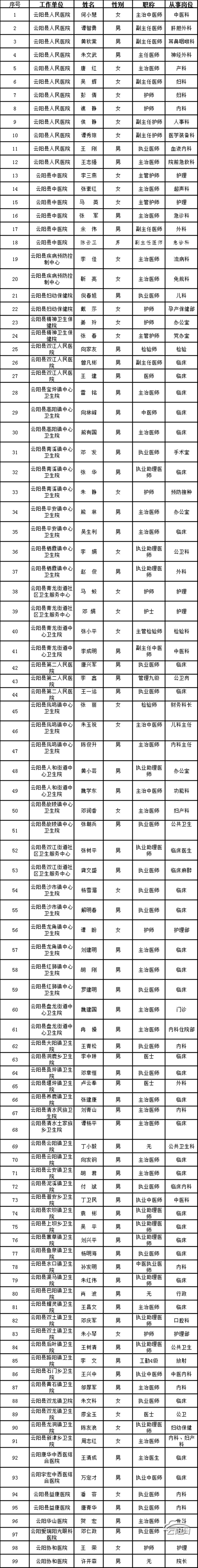 云阳县2018—2019年度十佳院长、十佳医生、十佳护士、十佳医德标兵、十佳乡村医生、优秀医务工作者名单