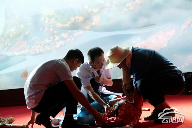高阳片区带来的情景诗朗诵《破晓的曙光》深情讴歌了党带领全国人民取得的丰功伟绩;红狮片区带来的情景剧《卫生健康之路》则展现了卫生健康事业发生的翻天覆地变化。接着,凤鸣片区的小品《我要签约》、双江人民医院的情景剧《在路上》、精卫院的情景舞蹈《大爱无疆》、县中医院的情景歌舞《中医之光耀古今》等节目轮番上演,赢得了现场观众阵阵掌声。文艺汇演在中医护理技术表演《平衡火罐、中药火疗》中结束。