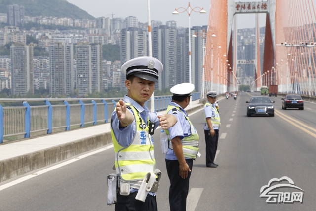 8月22日的中午12点,在县城滨江大道上,记者看到戴着警帽和白手套的民警杜定恒站着标准的姿势,守护着过往车辆的平安。