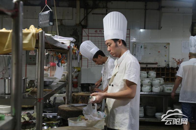 三峡风大酒店相关负责人介绍,目前后厨部共十六人,他们常年在高温炉火边掂锅、掌勺,配菜,冬日里油烟熏人,夏日里炙热难耐,希望顾客在等待美食的时候多一点耐心和理解,少一份烦躁,厨师们正在尽力为大家准备美食。