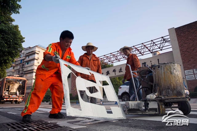 云阳网讯(记者 刘兴敏)近日,重庆鑫畅交通设施公司的工作人员在云阳县云江大道教师进修学院的学校门前修复标线,让斑马线和标线更明晰,车辆“礼让行人”,行人“守法过街”。