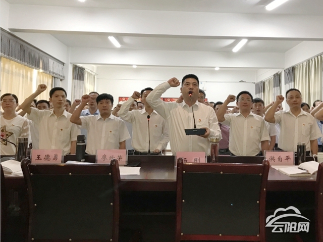 “我志愿加入中国共产党,拥护党的纲领,遵守党的章程……”会议召开之际,全体党员右手握拳,庄严宣誓,重温入党誓词,回归初心。