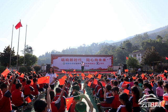 云阳网讯(记者 段斯斯 通讯员 万柯言)为庆祝中华人民共和国成立七十周年,表达对祖国的热爱,9月30日,桐林小学开展了“唱响新时代,同心向未来”系列庆祝活动。
