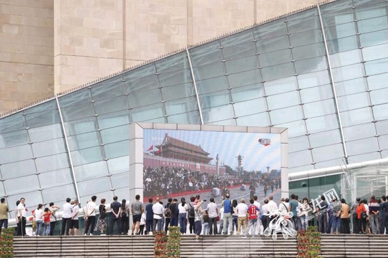 不少市民在三峡博物馆前观看阅兵式。华龙网-新重庆客户端 首席记者 李文科 摄