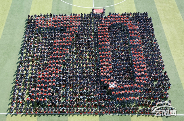 云阳网讯(记者 刘兴敏 通讯员 张晓林)“祖国,我爱你!” 9月30日,职教中心1450余名学生在足球运动场上一边高呼,一边排列数字、英文和汉字喜迎国庆,祝福祖国70华诞。