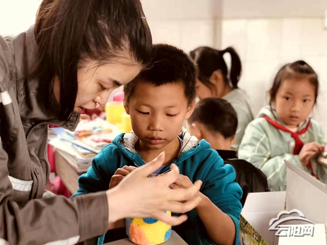 青年志愿者们通过给孩子们讲解基础乐理,培养孩子们对音乐的兴趣,和孩子们一起制作属于自己的笔筒,让孩子们锻炼动手能力;在朗诵课上,青年志愿者用慷慨激昂、声情并茂的范读,教会孩子们用语言和声音勇敢表达自己。课堂上的欢声笑语响彻山间,为静谧的贫困山区增添了欢乐。