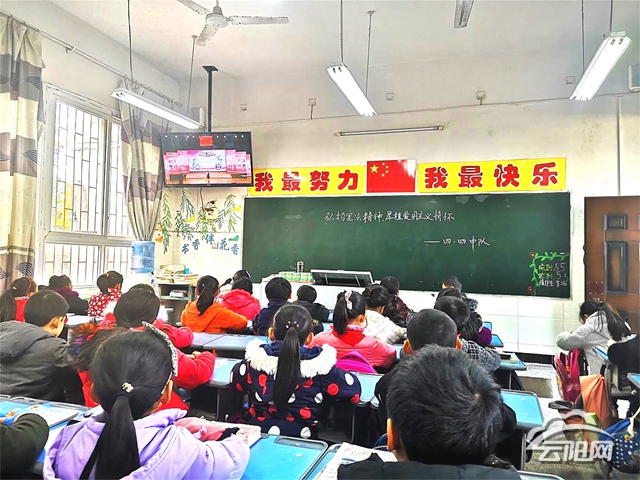该校各班组织学生利用班班通,全程收看了教育部“宪法晨读”网络直播。在收看直播的同时,教师带领学生同步跟读宪法,跟唱《宪法伴我们成长》。随后,举行了宪法知识竞赛活动。