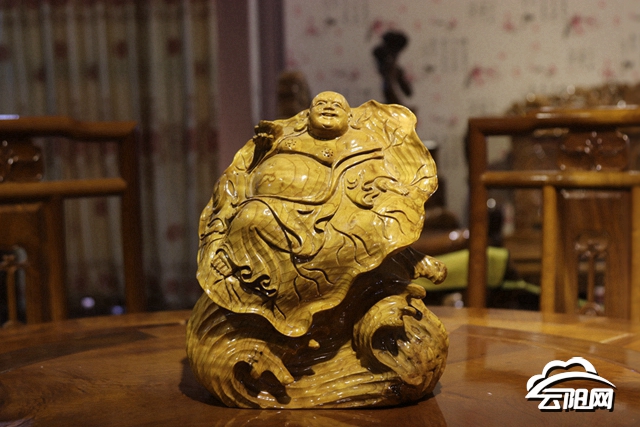 迎客松、骏马奔腾、关二爷、观音坐莲……走进车间,一件件制作精美、形象逼真的木雕作品映入眼帘,让人看得惊叹连连。