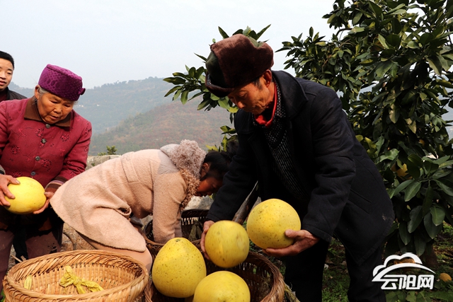 云阳网讯(记者 邓庭庭 朱学徽)12月12日,宝坪镇桂坪村果园里,果农们正忙着采摘蜜柚,随风飘来阵阵柚香。