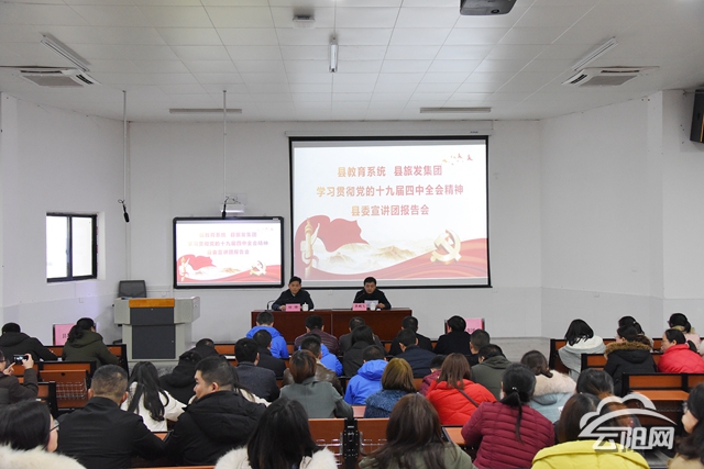 • 云阳网讯(记者 王彬彬 朱学徽)12月13日,县教育系统县旅发集团学习贯彻党的十九届四中全会精神宣讲报告会在实验中学召开,县委宣讲团成员徐锋作宣讲报告。