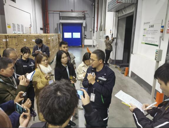 重庆医药和平物流中心负责人(中)向采访团介绍智能化设施。姚於摄