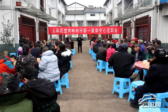 云阳网讯(记者 何竞嘉)12月23日,人和街道凤岭村开展干群一家亲交心述职会,街道主要负责人、驻村工作队、村四职干部齐动员,为在家群众送去了党委政府的关怀与祝福。