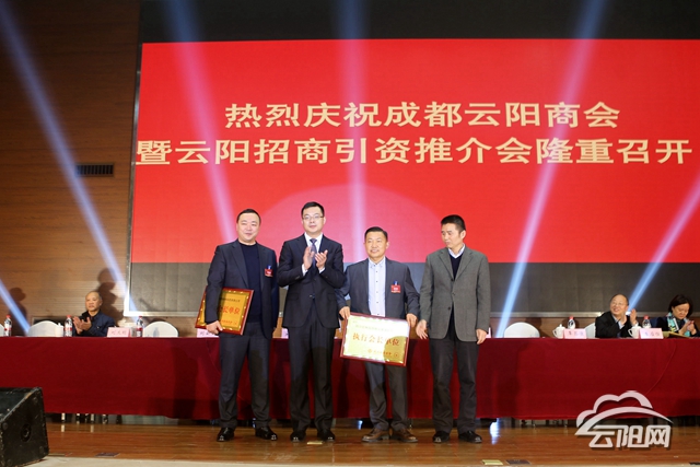 会议为成都云阳商会授牌,为商会会长、执行会长、监事长等授牌和颁发证书。