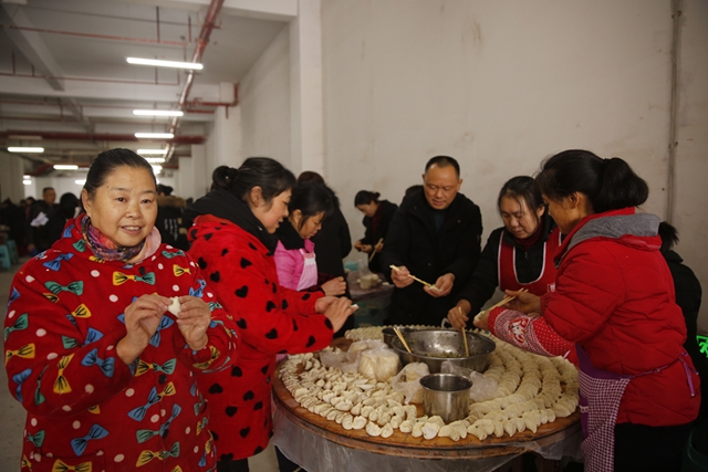 云阳网讯(记者 陈小娅)12月28日,盘龙街道盘石社区举办“干群一家亲”活动,党员干部和居民群众欢聚一堂,自己动手办起了其乐融融的饺子宴。
