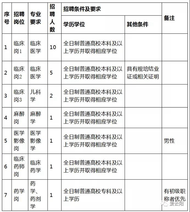 按照附件要求各岗位需是相应的全日制本科及以上或者全日制专科及以上学历。其中规培生需取得规培结业证或相关规培证明。
