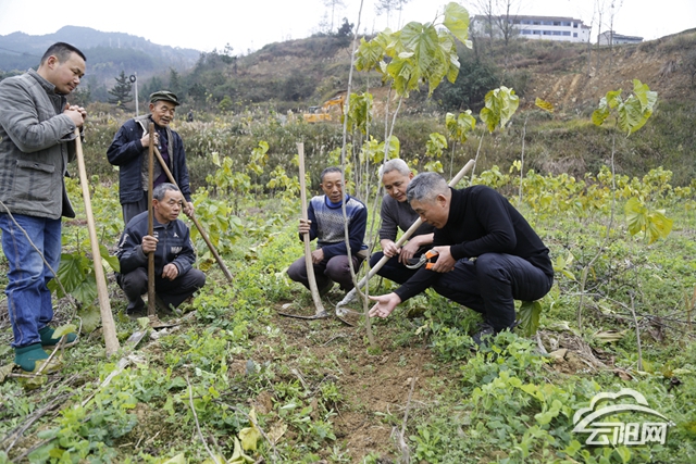 • 暖阳照耀,微风习习。连日来,栖霞镇吉平村第一书记叶正泉,趁着好天气,带着一把剪刀,扛着一把锄头,和村民们一道来到田间,对蚕桑基地中的几百棵桑树进行冬管,除草、施肥、修剪枝条……叶正泉手把手指导村民们管护,还半开玩笑说着:“乡亲们,大家铆足劲干,管护好这片桑树,咱们得为春节后的第一季养蚕备足“粮食”。