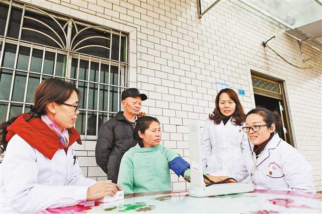 永川仙龙镇张家村,党员服务队医生为贫困患者测血压。(本报资料图片) 通讯员 陈仕川 摄