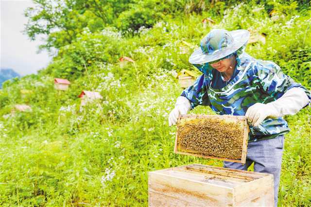 石柱县中益乡华溪村蜜蜂谷,管护人员正在查看蜜蜂情况。(本报资料图片)记者 张锦辉 摄