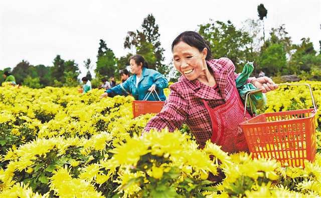 酉阳县南腰界镇红岩村四组,村民正忙着采摘金丝皇菊。(本报资料图片) 通讯员 陈碧生